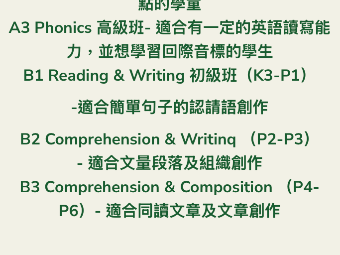 B1 Reading & Writing 初級班 (K3-P1)
